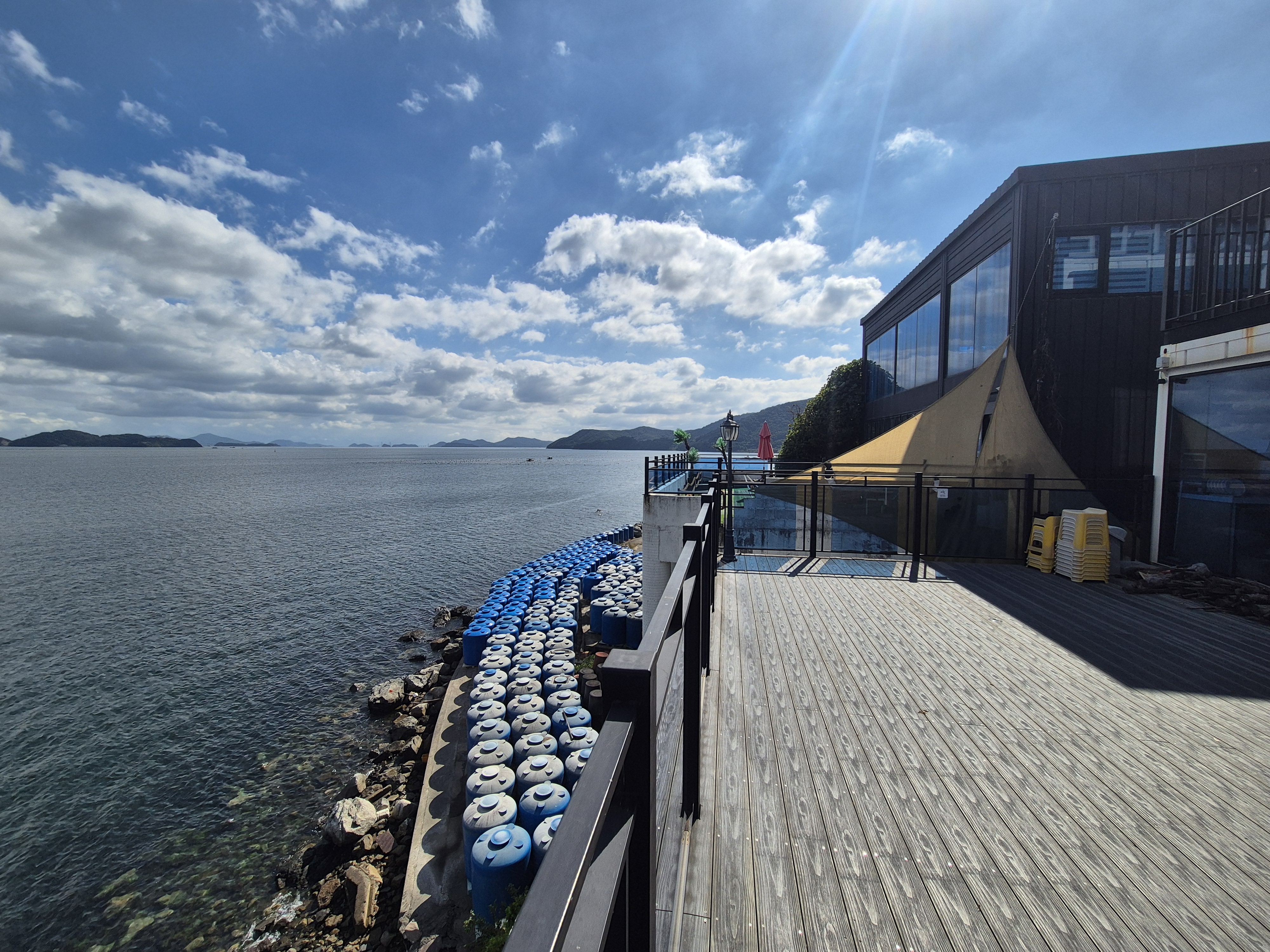 창가 자리에 앉으면 진해 바다와 멀리 보이는 섬들이 그림처럼 펼쳐지고, 바닷바람이 기분 좋게 스며듭니다.